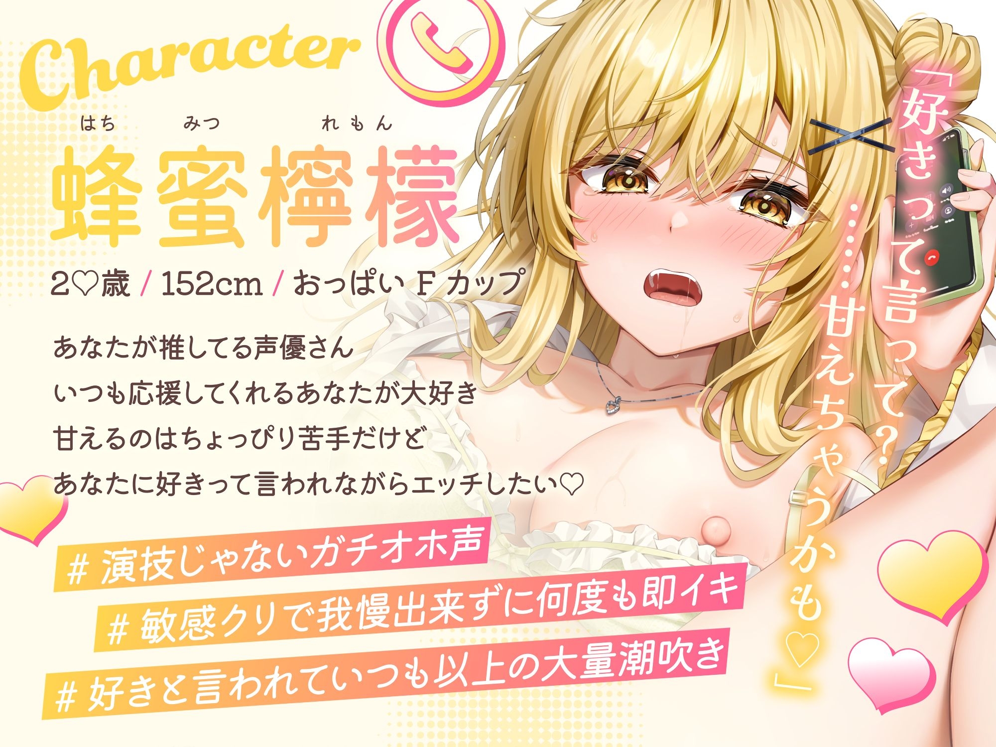 ※この作品は、声優さんとリアル通話しながら台本なしで収録しています※ あなたの“好き”に照れて、甘えてくれる推し声優さん。 リアル通話だからこそ生まれる距離感とドキドキを全部あなたに。 「買ってよかった」って、心から思える――そんな音声体験をお届けします。 cv:蜂蜜檸檬 / 実演 / 通話 / オホ声 / あまトロ