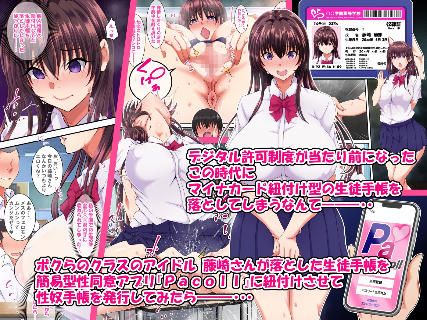 簡易型性同意アプリ『Pacoll』に、藤崎さんの個人情報入り生徒手帳を紐づけて『性奴手帳』を発行!!
