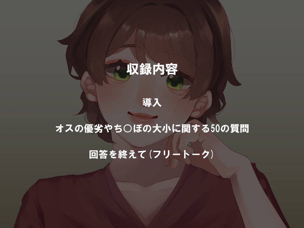 女の子に、強いオスと弱いオスについてそれぞれをどう思うかを50問50答で質問するドキュメンタリー音声です。台本なしのガチ企画です
