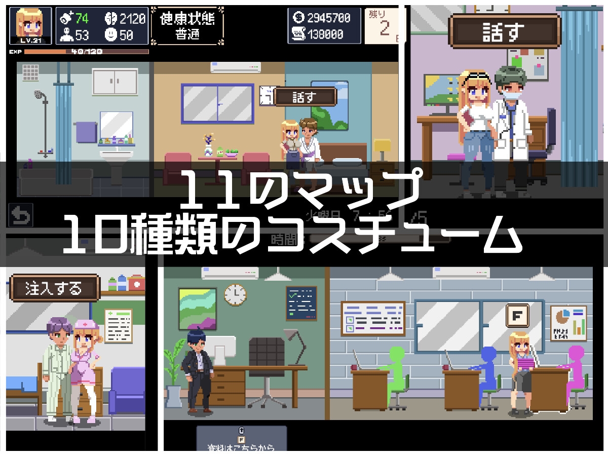 ミニゲームは6つあり、仕事に失敗すると給料が半分しかもらえなくなり、Hシーンが登場します。