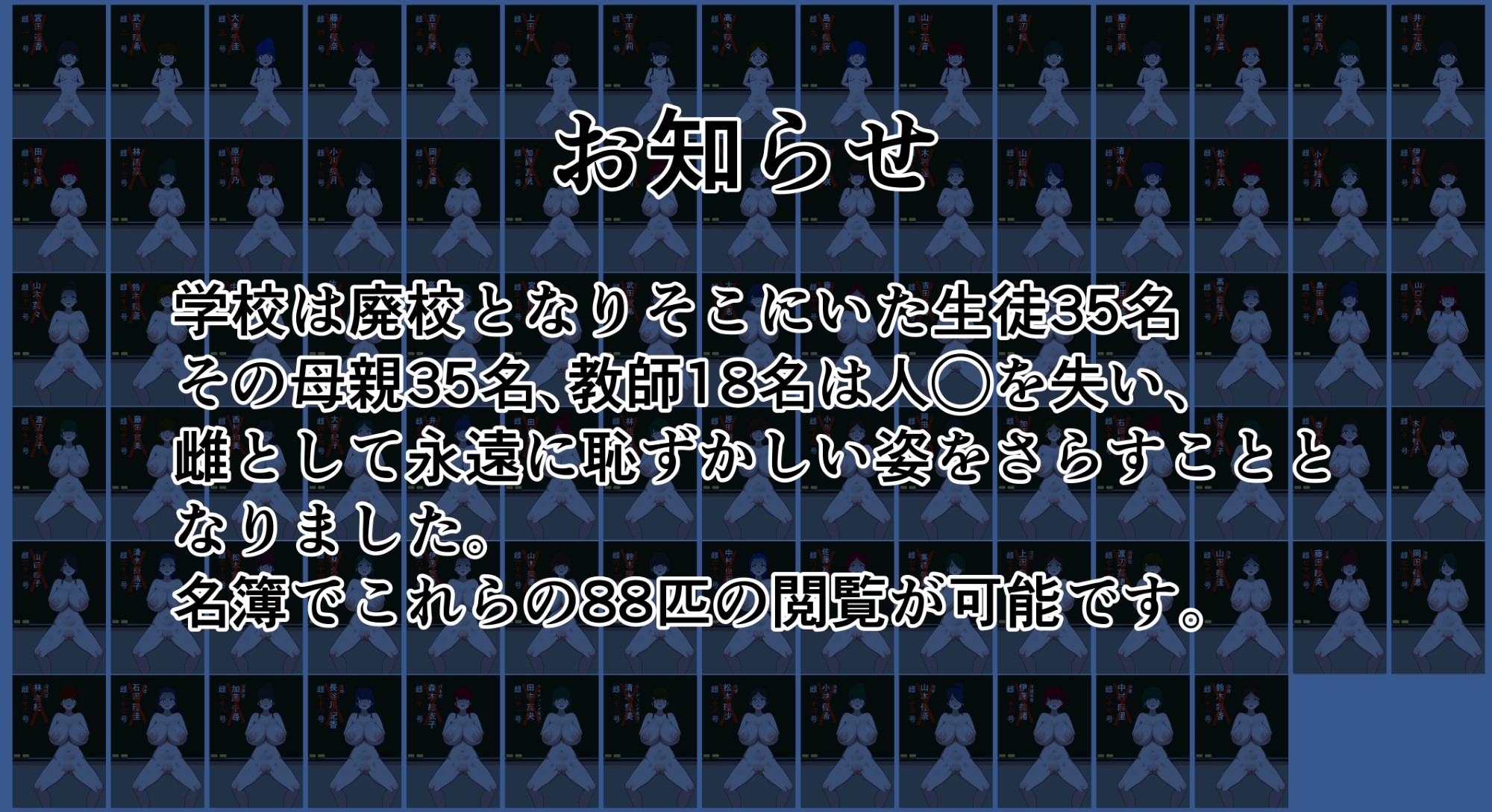 学校廃校人生終了のお知らせ恥ずかし全裸名簿88人 CG・イラスト