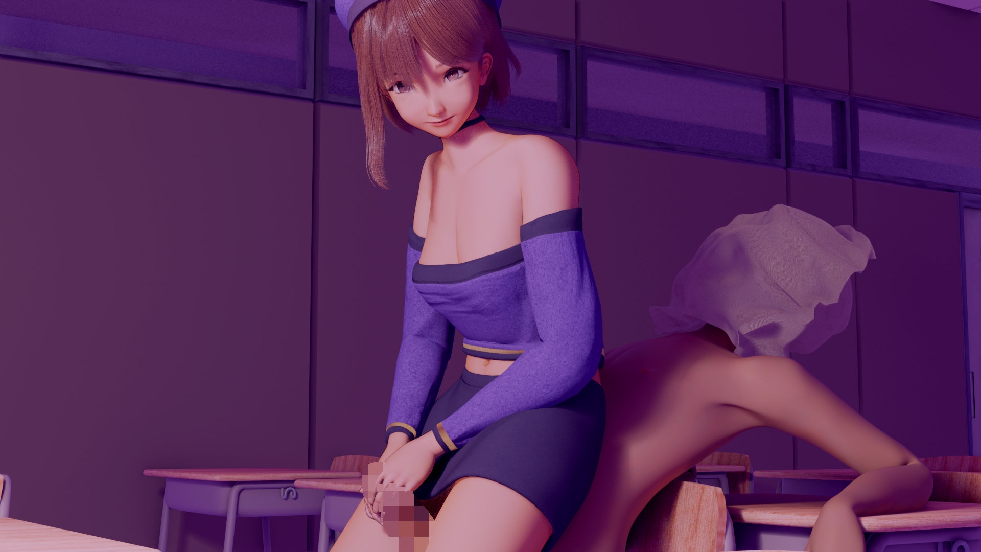 菫色の仄暗い教室でアナタは頭に袋をかぶり椅子に座ったままイチモツを弄られています。本来なら俯瞰で見ることができないそんな状況を3DCGでアニメーションさせました。アリエナイ設定の菫色の教室の出来事を動画でご覧ください。