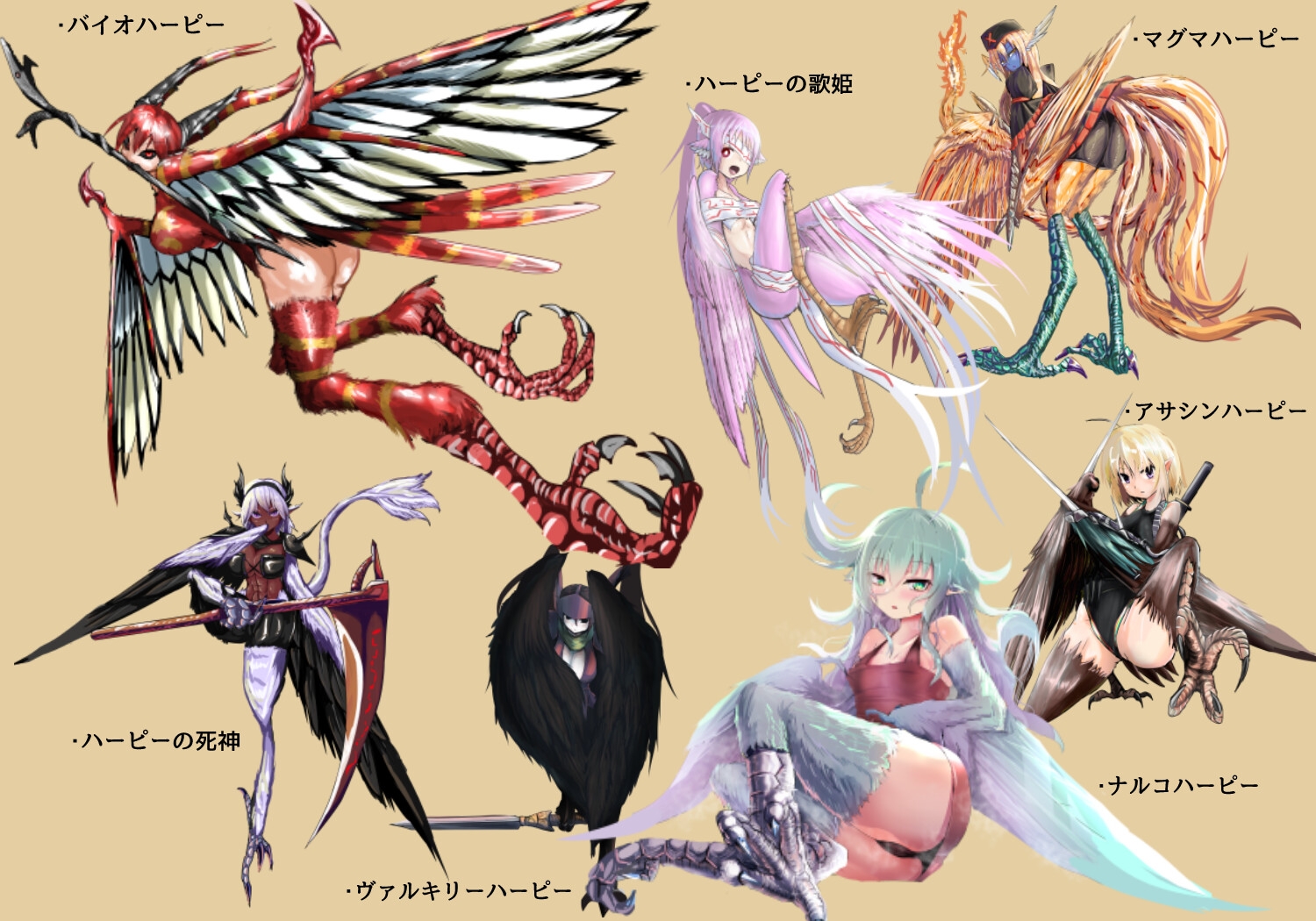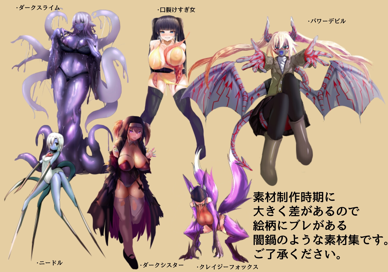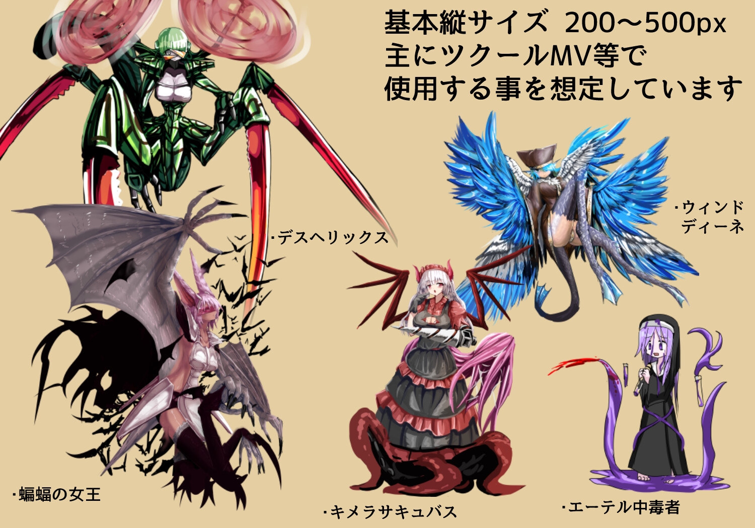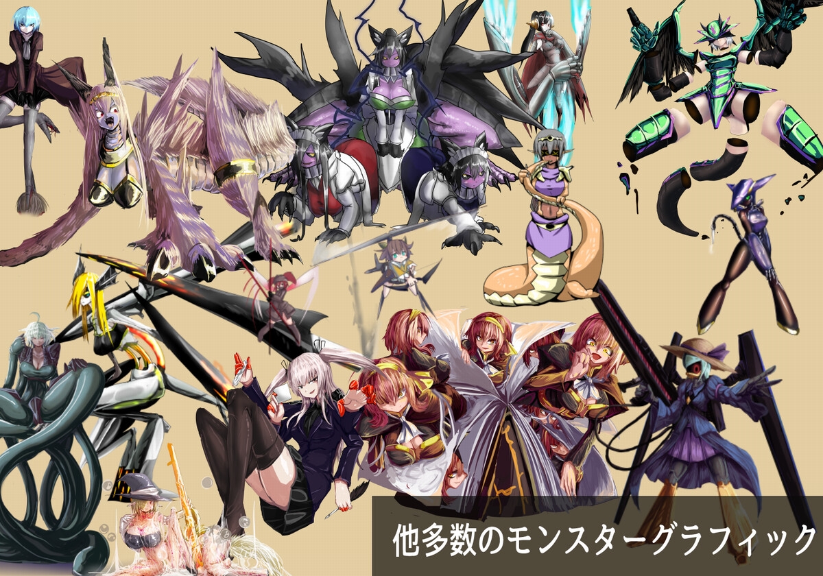 定番のハーピーから独自の形状のモン娘まで取り揃えており、主に敵女幹部のグラフィックと相性が良いのではないかと思います。