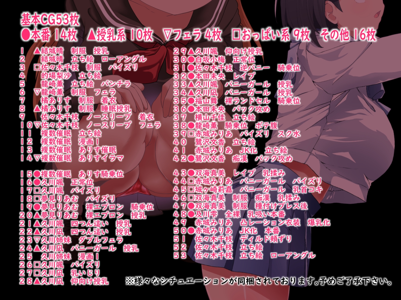 ・基本CG53枚※立ち絵単体なども含まれます。