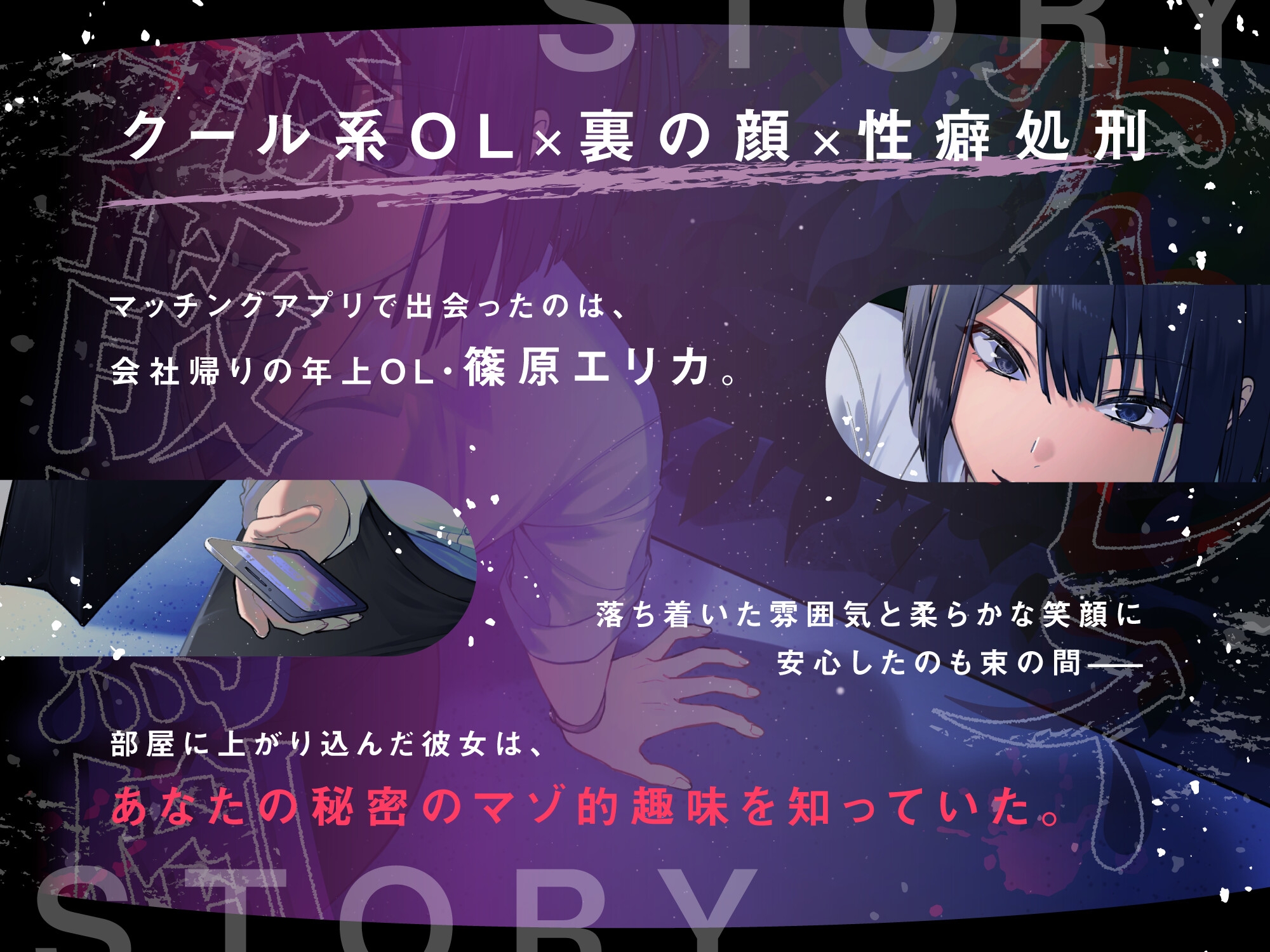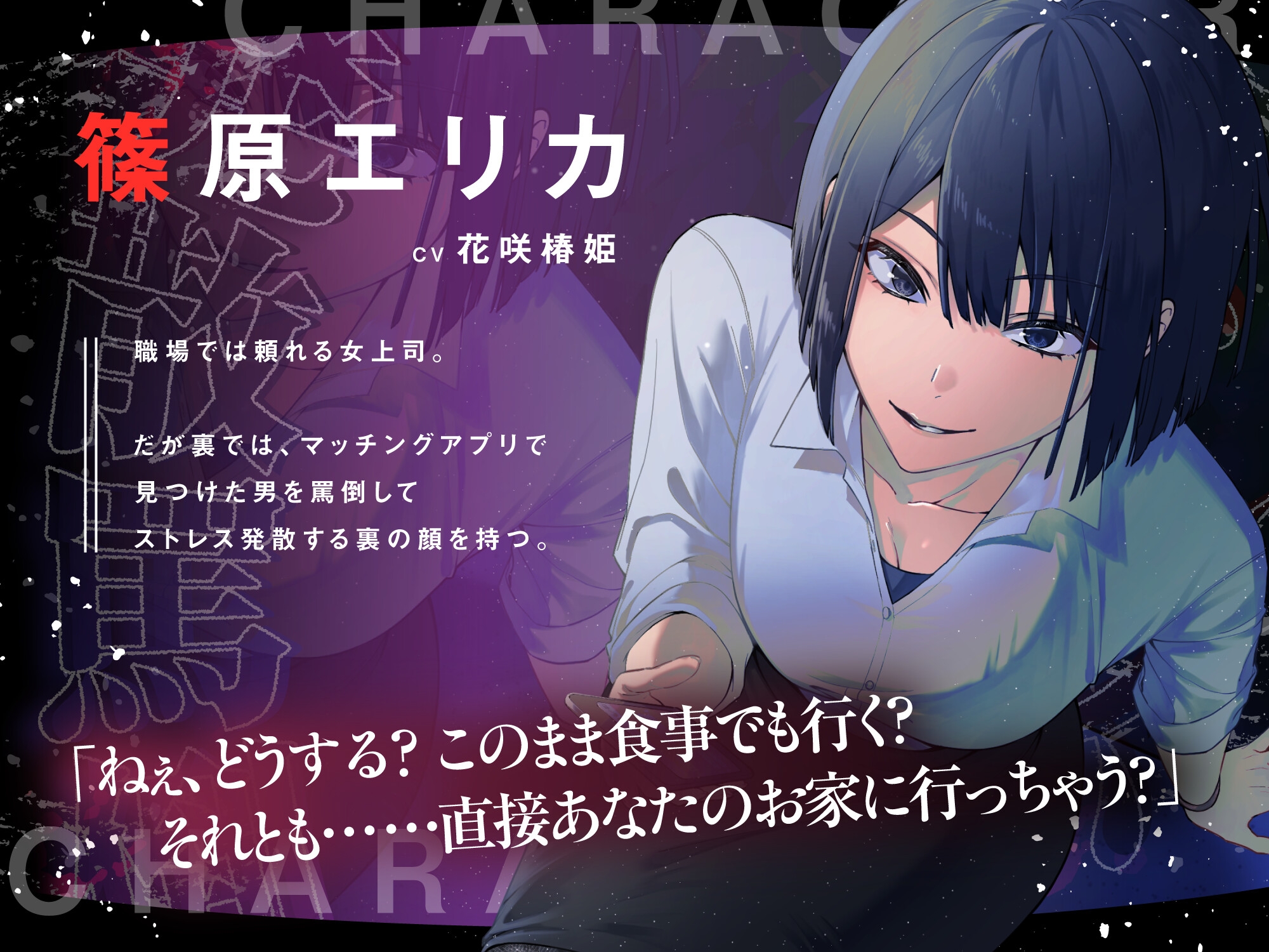 マッチングアプリで出会ったOLの正体は、会社のストレスをマゾ男にぶつけるドS女。罵倒、舌打ち、晒し…会社にもバラされるかもしれない恐怖に、あなたは耐えられる?精神破壊×羞恥プレイ作品。
