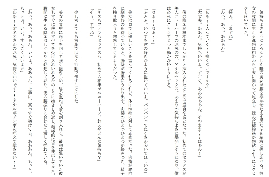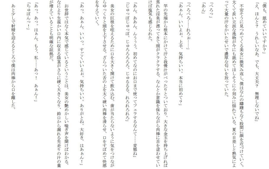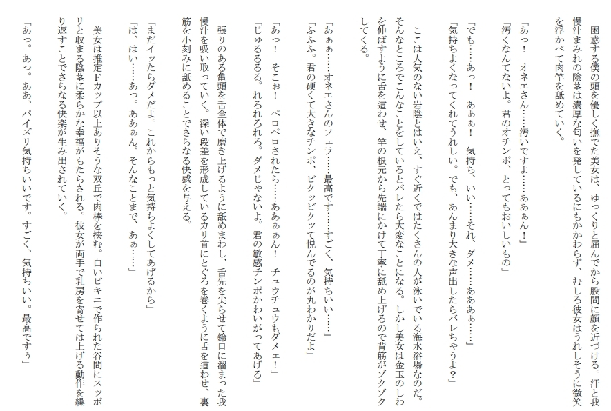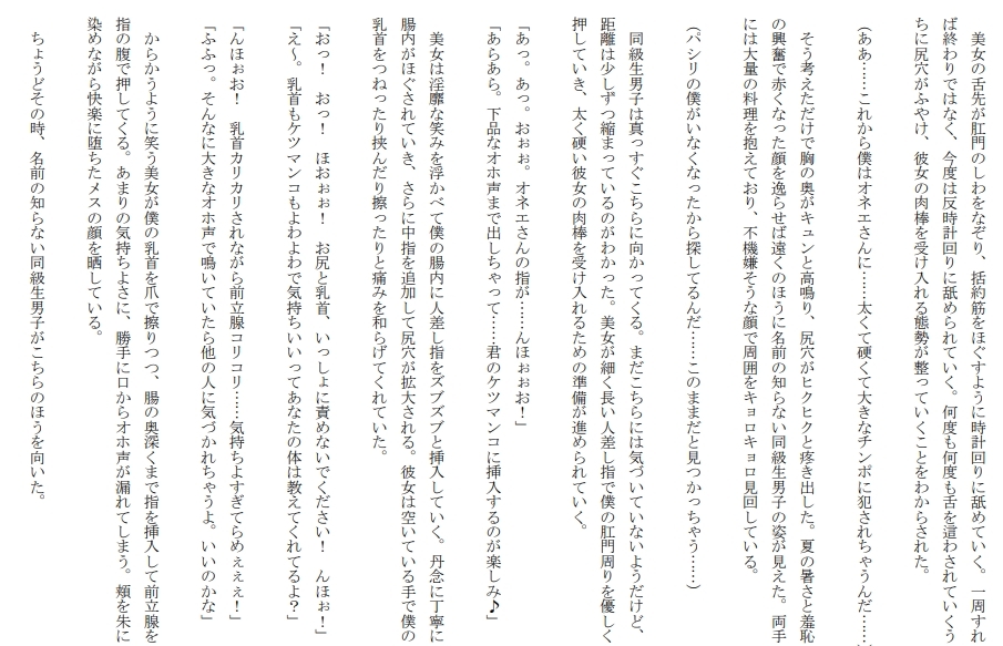 ふたりは夏の浜辺で唇を重ね合い、陰茎を舐め合い、尻穴に挿入し合う関係になる。