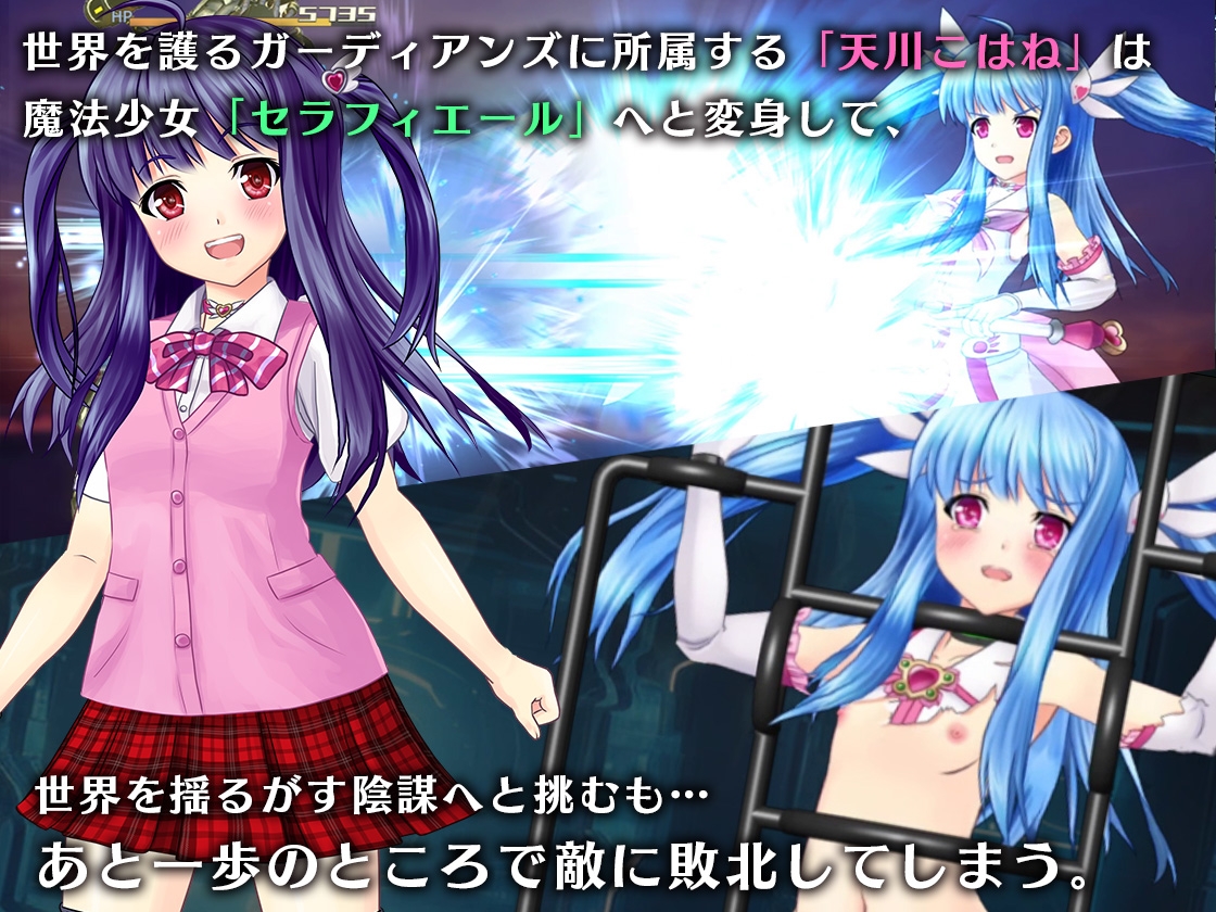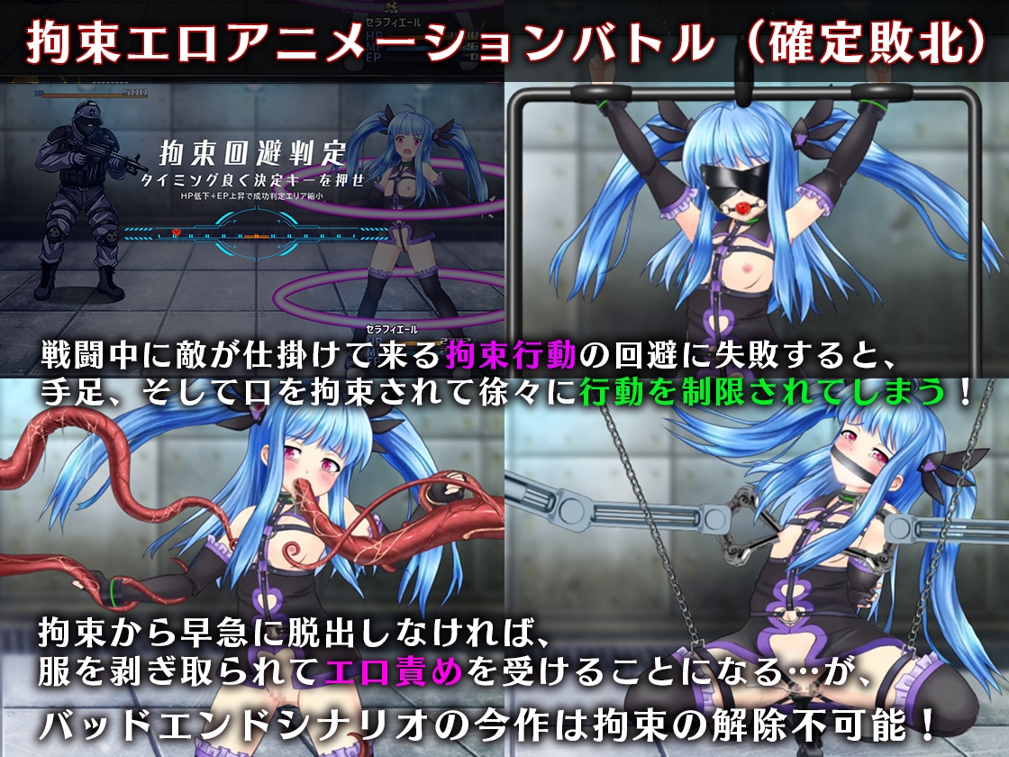 ・「魔法少女セラフィエール」に引き続き拘束エロアニメーションバトル搭載。