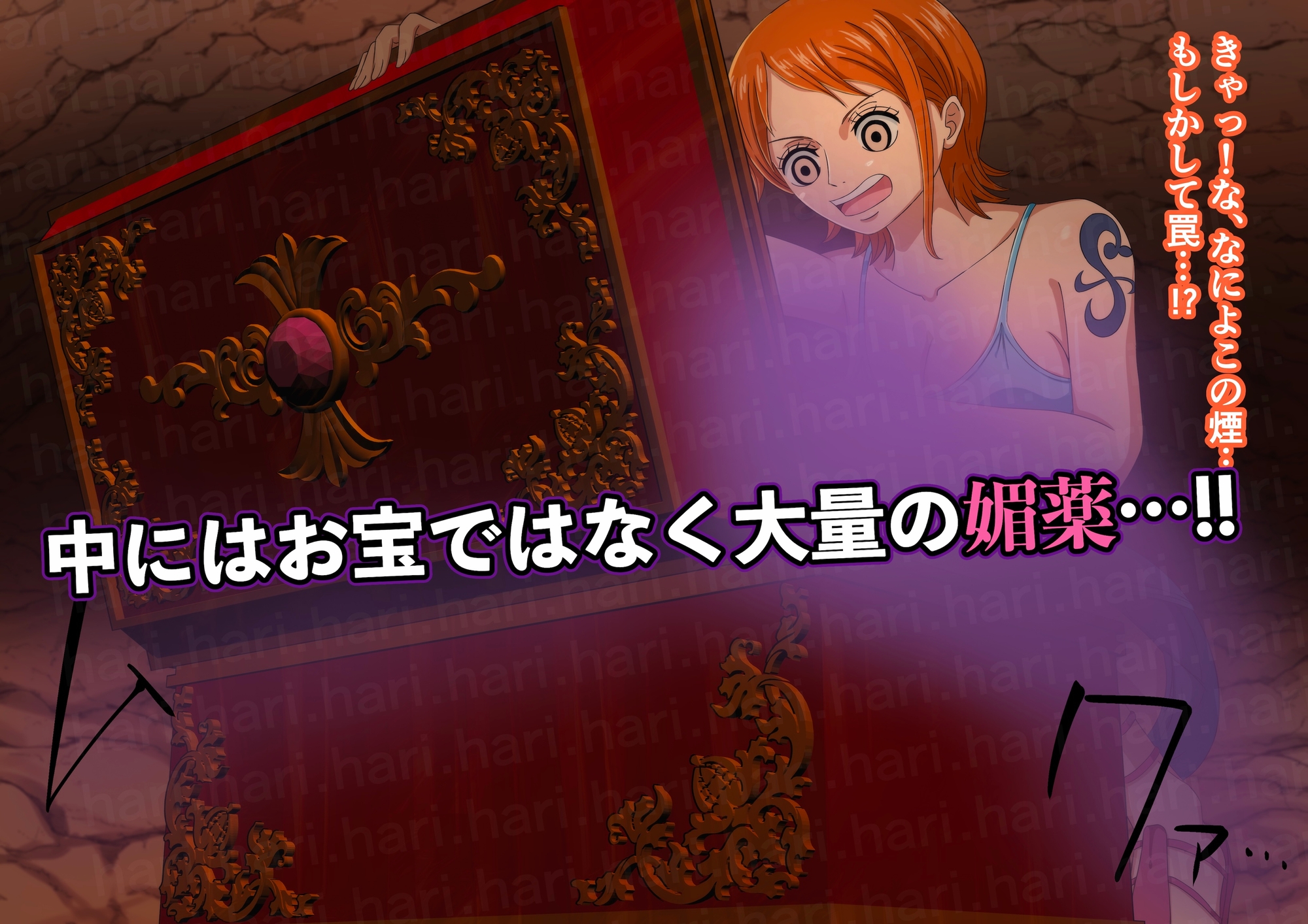 媚薬トラップにかかりムラムラ120%のナミさんが、通りすがりの男海賊を自室に連れ込んで汗だく生ハメセックス [RJ01419551][hari.物館]