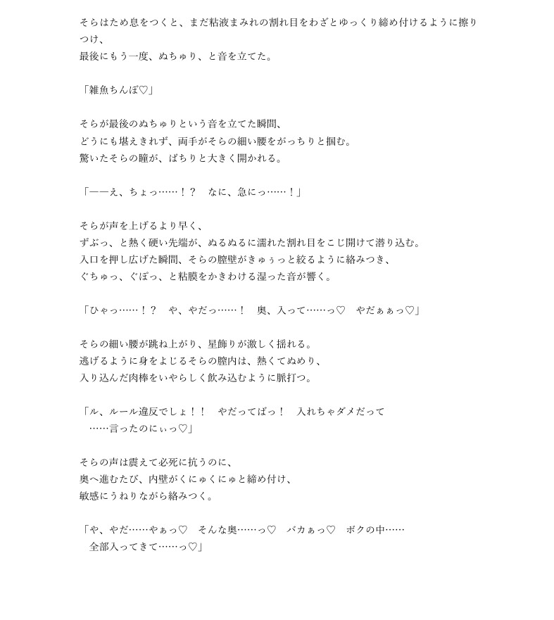 粘膜がぬちゅ、ぬちゃ、といやらしい音を立て、そらの割れ目が先端を柔らかく包み込む。