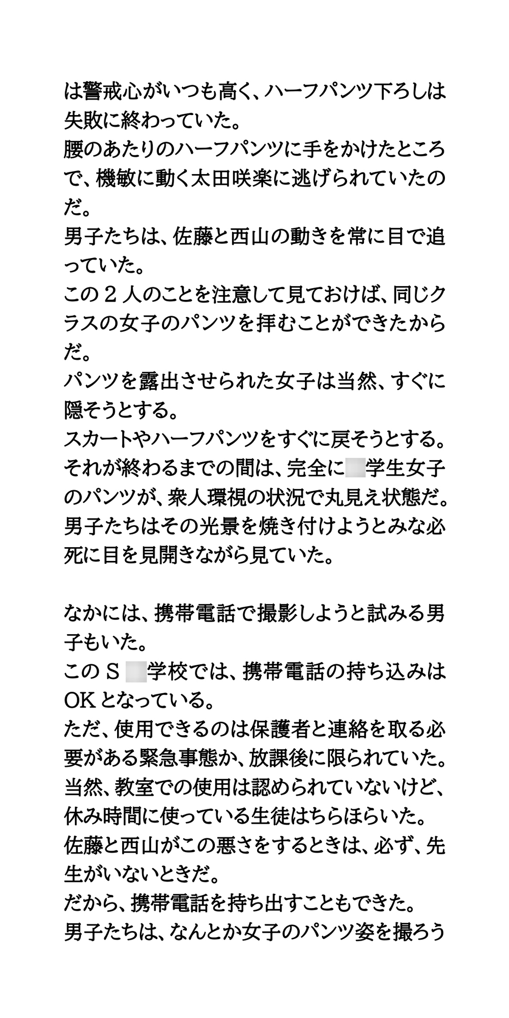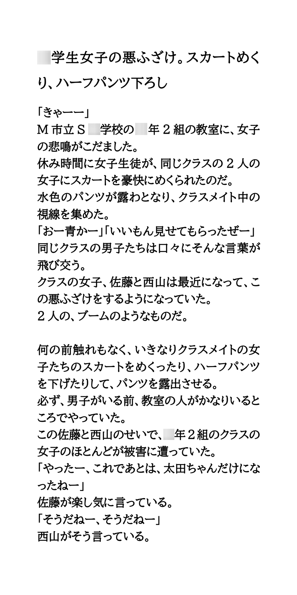 ○学校の教室内で、女子のパンツを露出させる悪ふざけが流行。