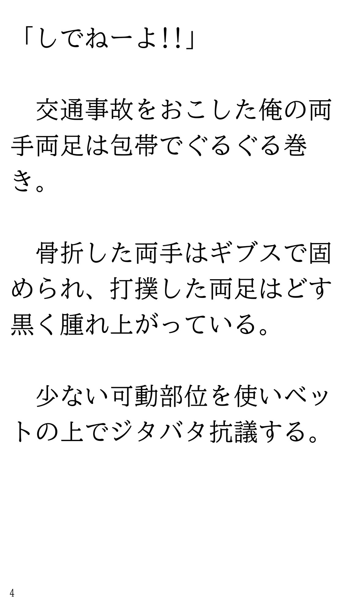 交通事故をおこした俺の両手両足は包帯でぐるぐる巻き。