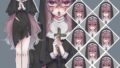 表情差分、1まい絵、いれて合計67まい、付け外しできるPNG衣服5まい、全裸、下着、衣服の表情差分各20