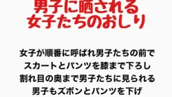 高校○年生のクラス全員が男女混合でモアレ検査を受けることになった。男女一緒に出席番号順に体育座りで並んで待機する中、男子たちはこれから女子のお尻が次々と晒されることに興奮を抑えきれない。女子が順番に呼ばれ男子たちの前でスカートとパンツを膝ま...
