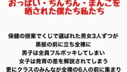 とある公立◯学校で静かにしなかった罰として全裸全校集会が開かれることに。300人が本当に全裸で体育館に整列して、◯学年ははしゃぎ、◯学年は恥ずかしさと興奮で緊張。女子のおっぱい・おしり、股間が露わになり男子のおちんちんは勃起が止まらない。ダ...