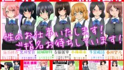 とある二次元の世界の民間性人材バンク…それは、性接待や性教育や社会人の性の研修、そのための人材を持たない学術機関や企業に人材を派遣する会社。 そんな会社に入社したばかりの新人女性社員7人の利用者向けパンフレットを紹介。 この7人は、処女で入...